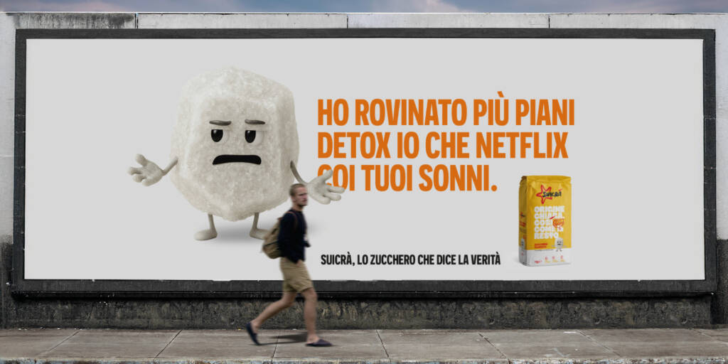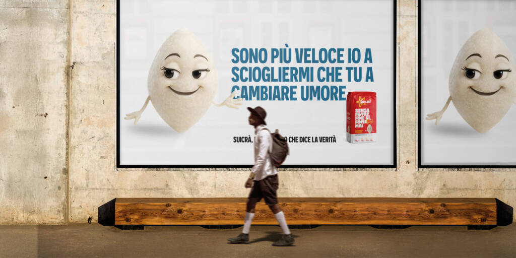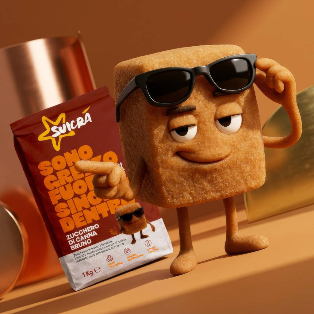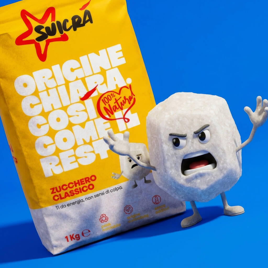 Il progetto parte proprio da qui: trasformare una commodity silenziosa in un brand capace di farsi notare, parlare e prendere posizione. Non più uno zucchero qualsiasi, ma uno zucchero con una voce. E non è una voce rassicurante.