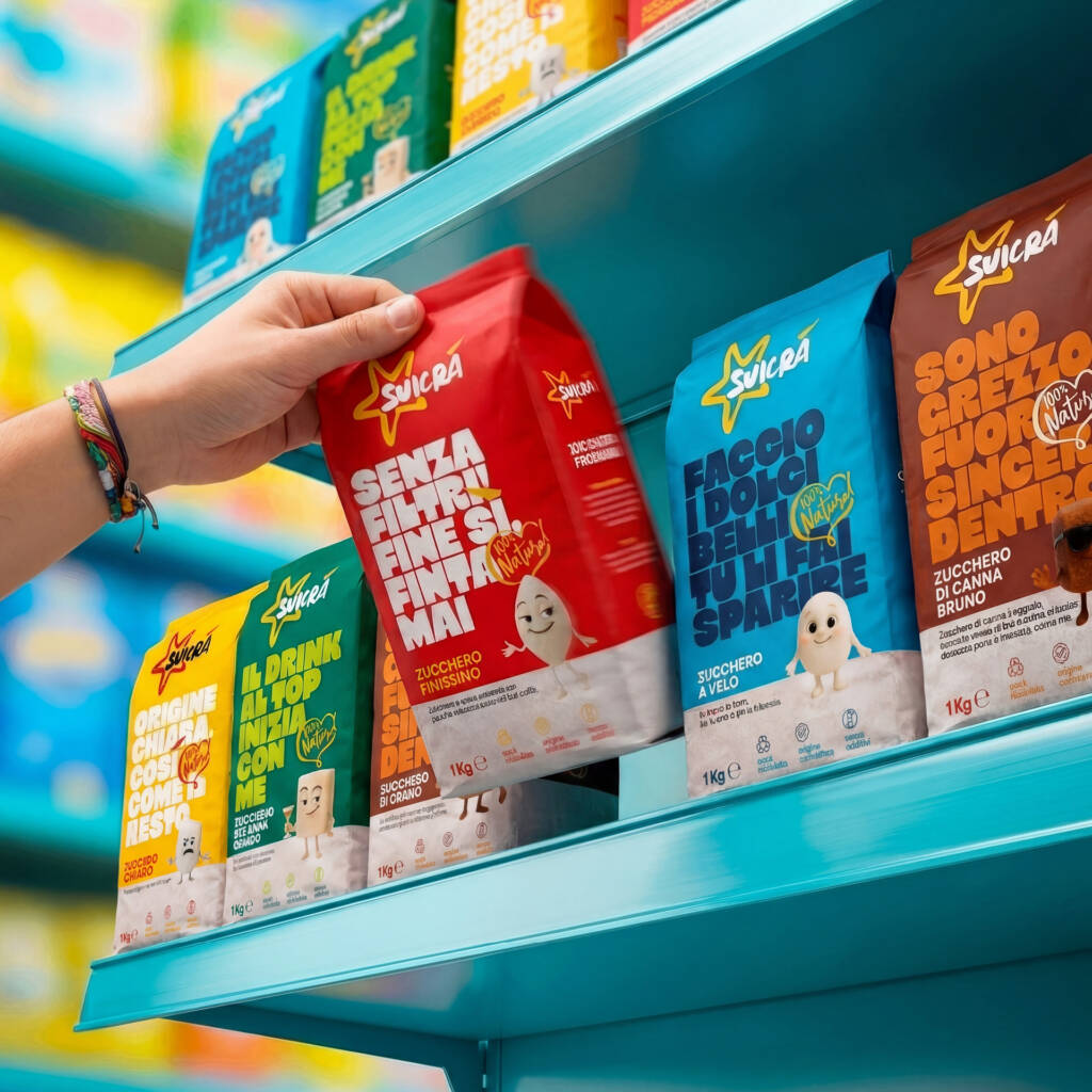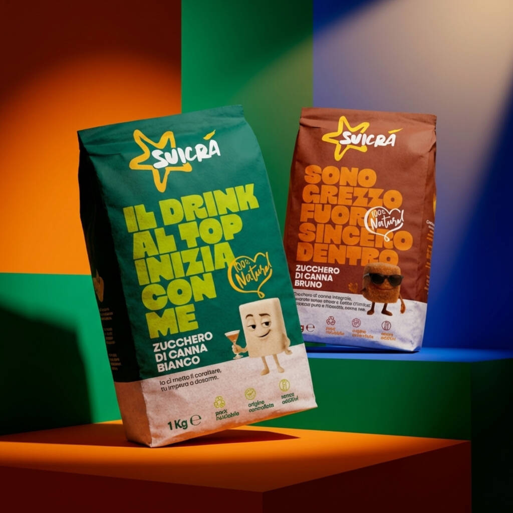 Suicrà nasce da una domanda semplice: perché uno dei prodotti più presenti nelle nostre vite è anche uno dei più invisibili? Nel mercato dello zucchero tutto è sempre stato uguale: pack anonimi, linguaggio neutro, nessuna identità.
